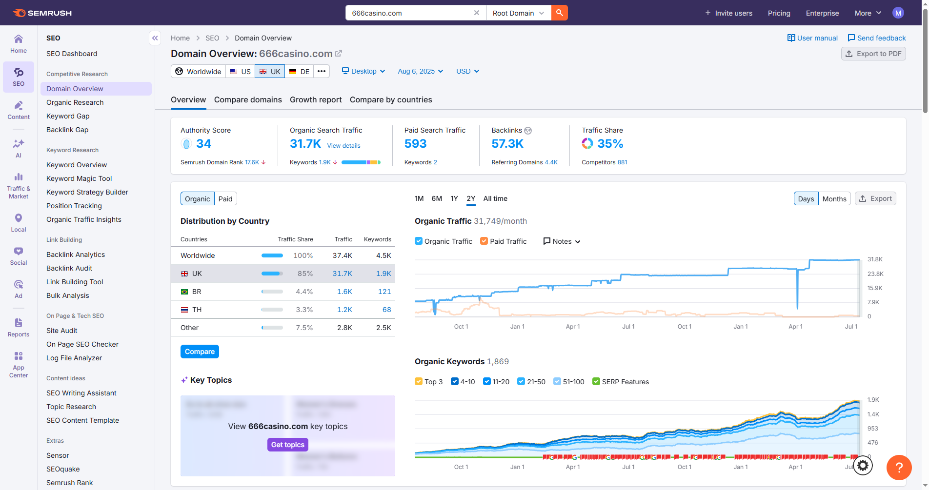 We’ve compiled 666 Casino’s estimated traffic using insights from Ahrefs.com and Semrush.