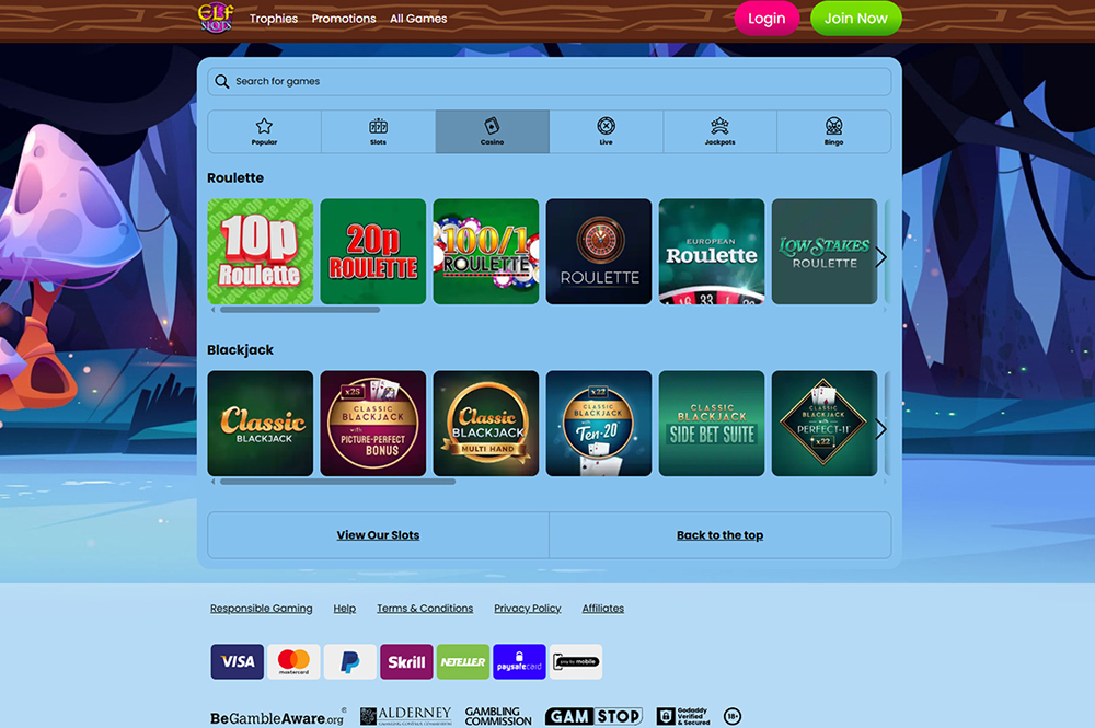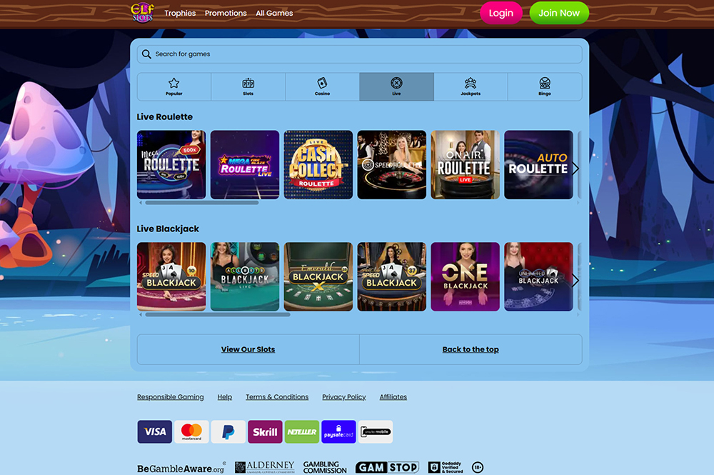 Elf Slots Casino offers the most popular live casino games, including blackjack and roulette. |