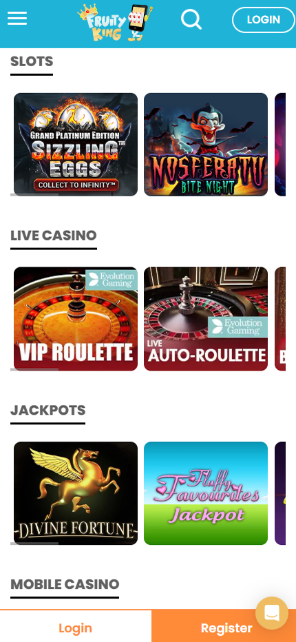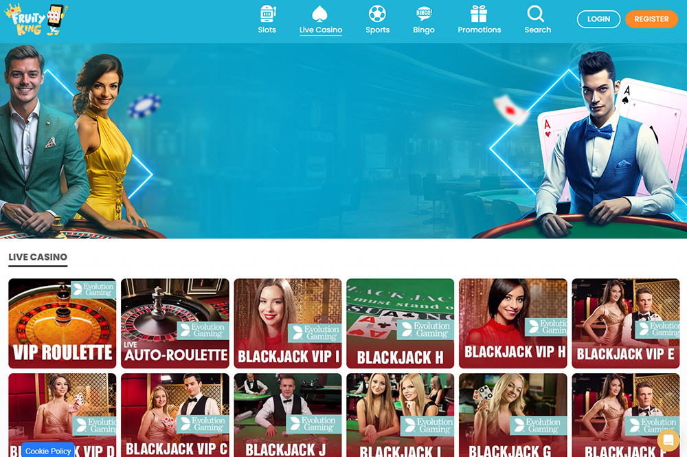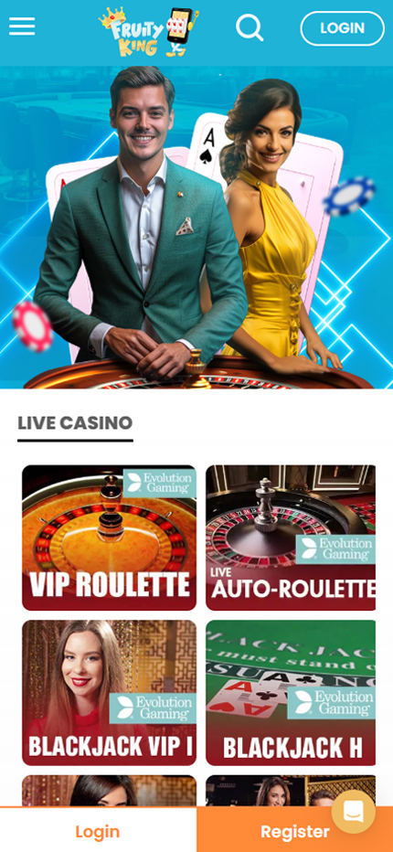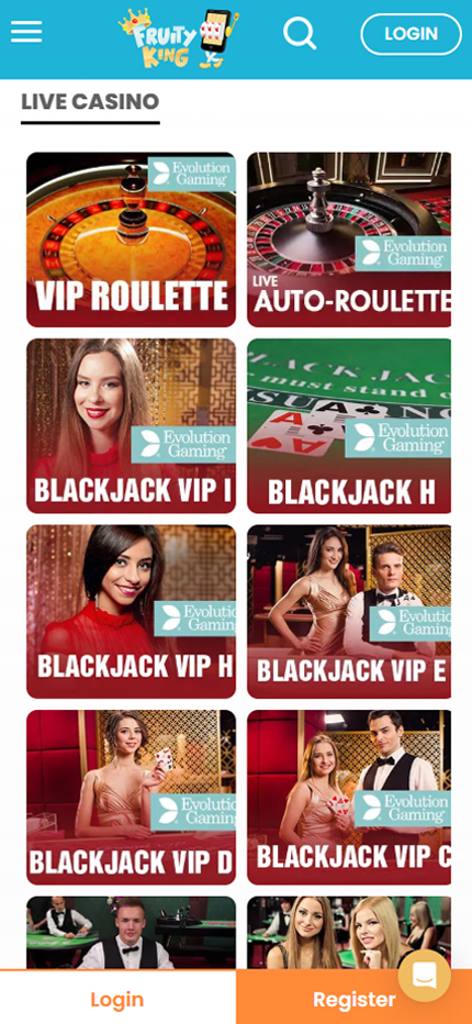 Fruity King Casino offers the most popular live casino games, including blackjack and roulette. |