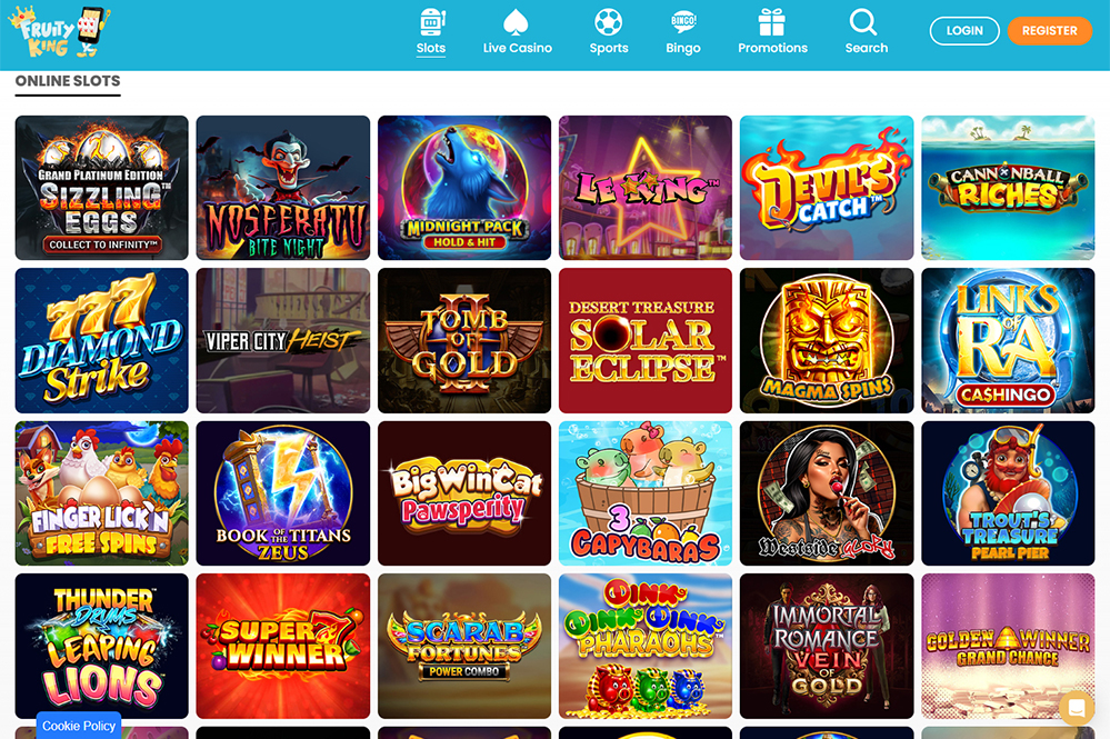 Fruity King Casino accepts a minimum deposit of £10 or lower. |