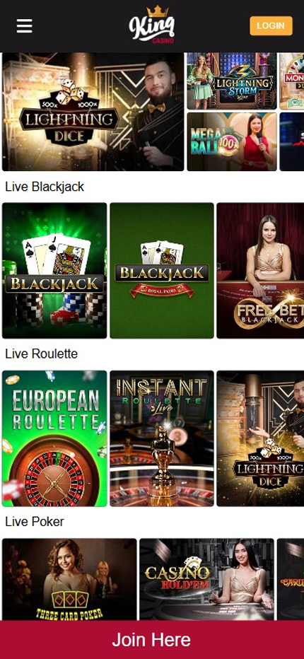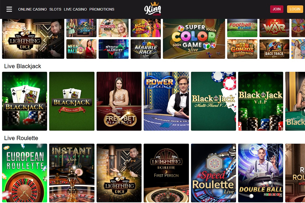 King Casino offers the most popular live casino games, including blackjack and roulette. |