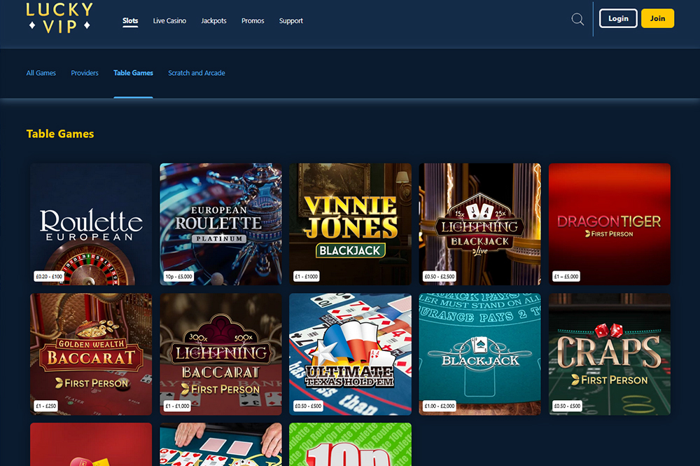 Lucky VIP Casino offers all the familiar slots you play online or on a fruit machine in the pub. These include games such as Big Bass Splash, Starburst, Immortal Romance, Book of Dead, and Fire Joker.