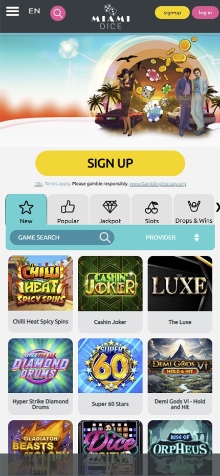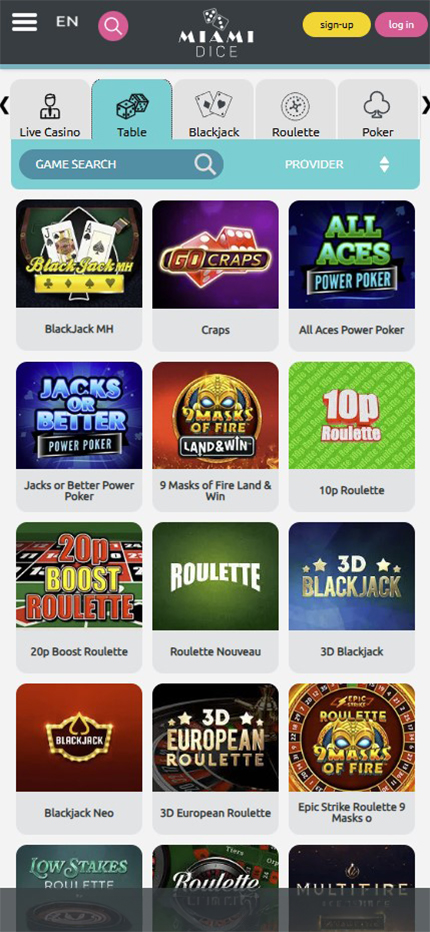 Miami Dice Casino has more games than 50% of all reviewed casinos. |