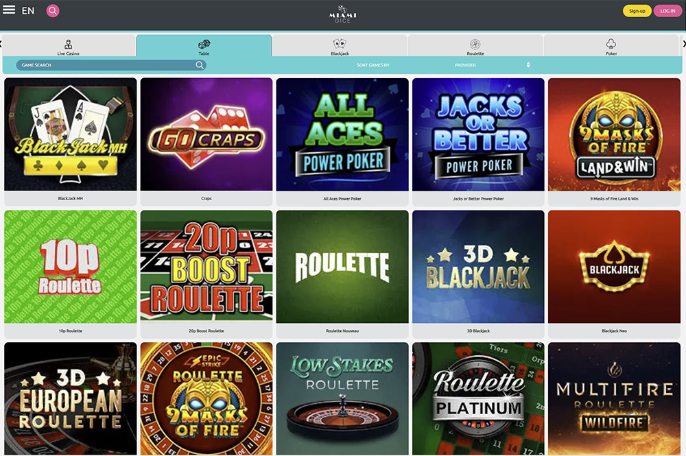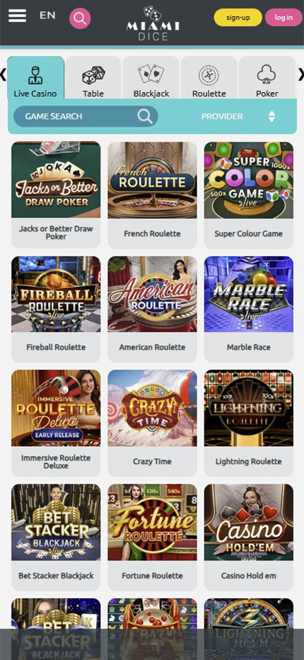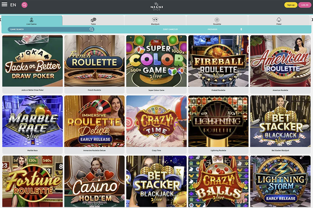 Miami Dice Casino offers the most popular live casino games, including blackjack and roulette. |