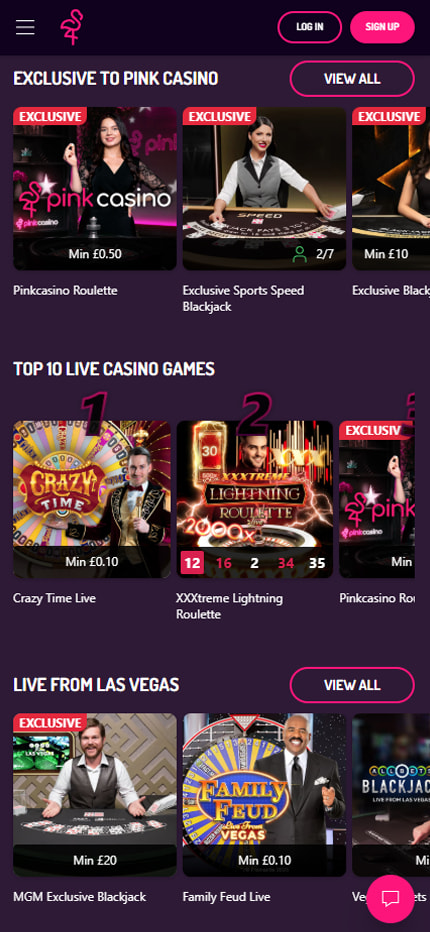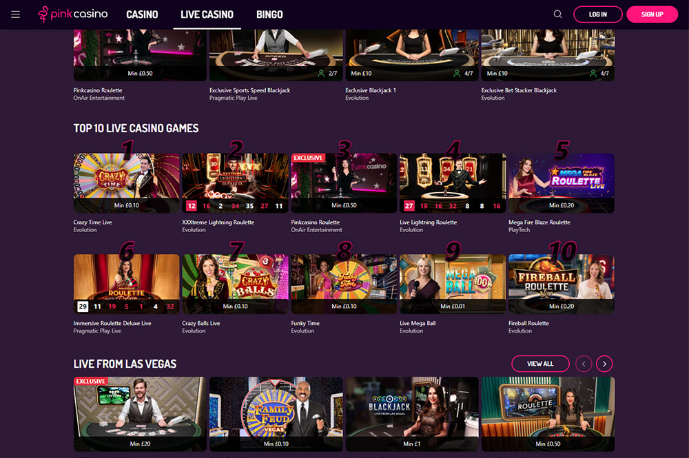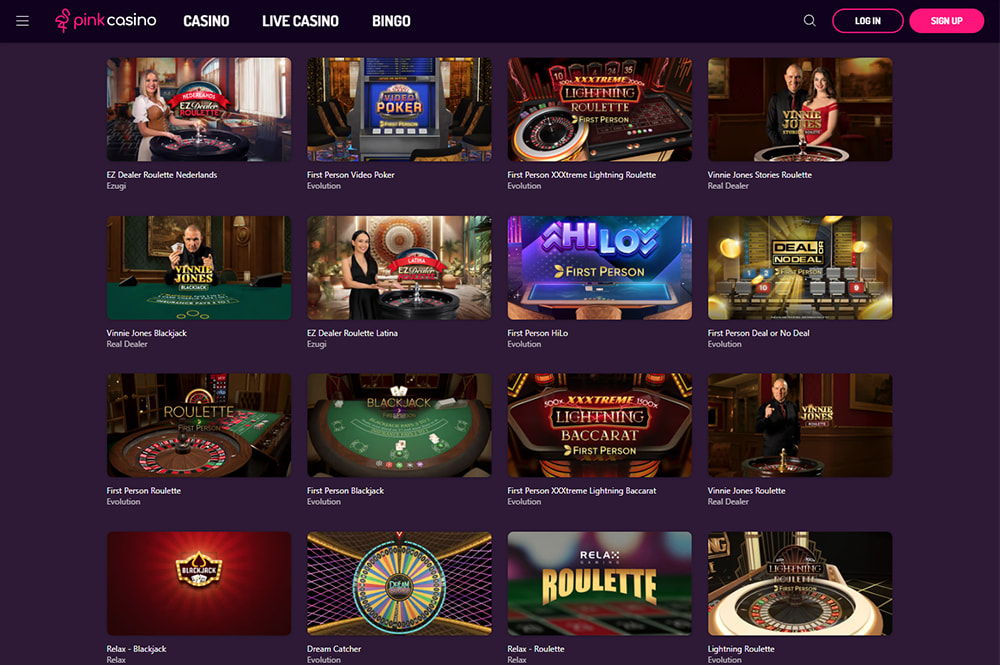 Pink Casino offers the most popular live casino games, including blackjack and roulette. |