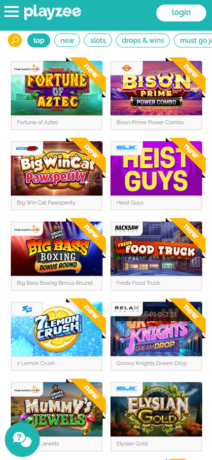 Playzee Casino has more slots than 60% of all reviewed casinos. |