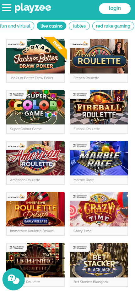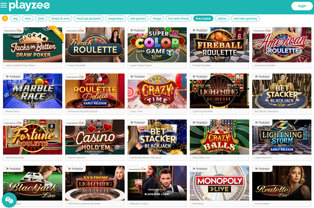 Playzee Casino offers the most popular live casino games, including blackjack and roulette. |